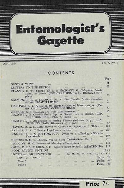 Entomologist's Gazette. Vol. 5, Part 2 (1954)