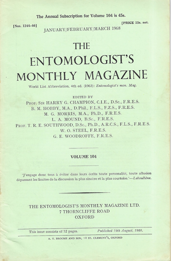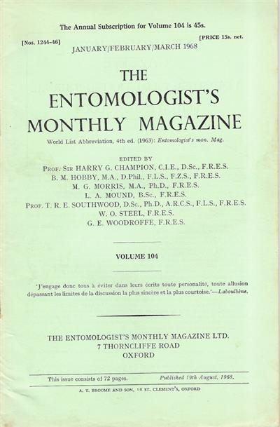 Entomologist's Monthly Magazine Vol. 104 Part 1 (1968)