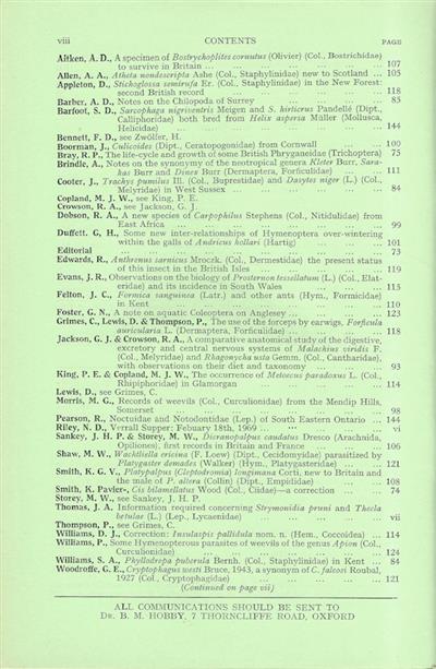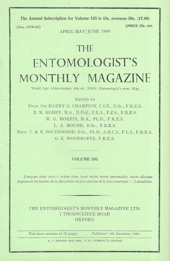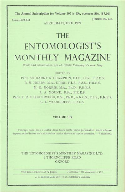 Entomologist's Monthly Magazine Vol. 105 Part 2 (1969)