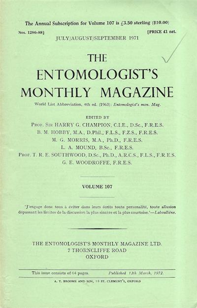 Entomologist's Monthly Magazine Vol. 107 Part 3 (1971)