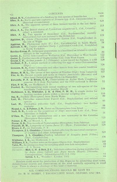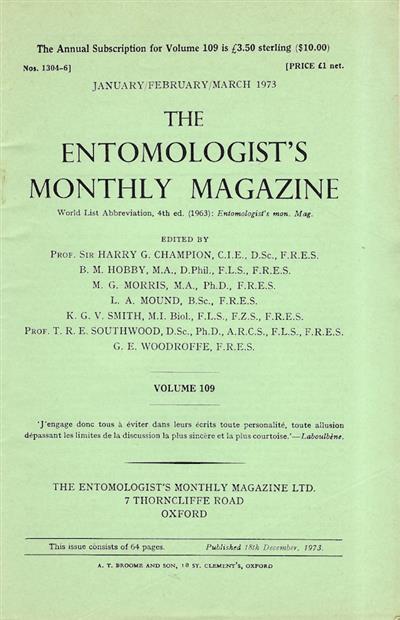 Entomologist's Monthly Magazine Vol. 109 (1973)