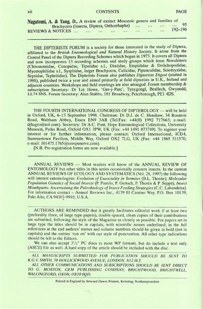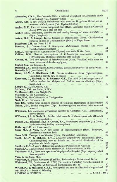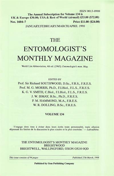 Entomologist's Monthly Magazine Vol. 134 (1998): No Index