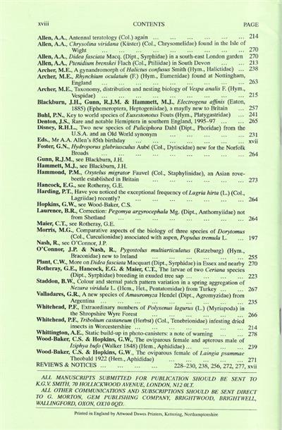Entomologist's Monthly Magazine Vol. 134 (1998)
