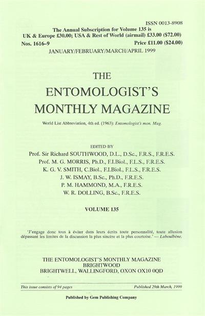 Entomologist's Monthly Magazine Vol. 135 (1999)