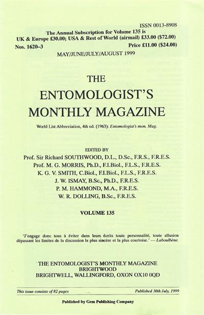 Entomologist's Monthly Magazine Vol. 135 Part 2 (1999)