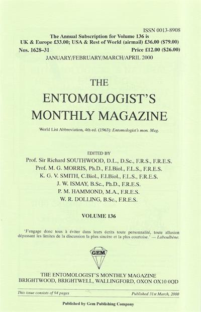 Entomologist's Monthly Magazine Vol. 136 (2000)
