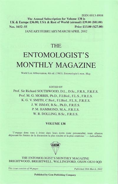 Entomologist's Monthly Magazine Vol. 138 (2002)