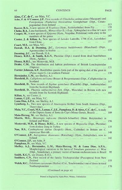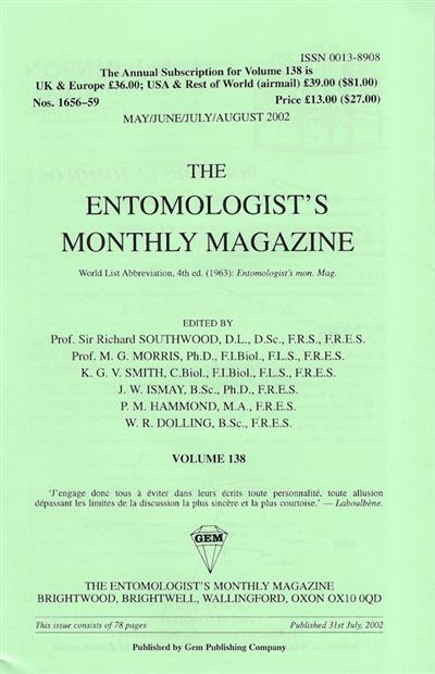 Entomologist's Monthly Magazine Vol. 138 Part 2 (2002)