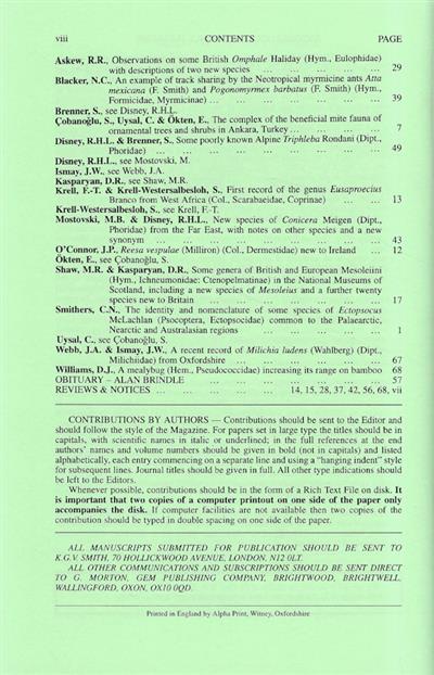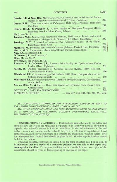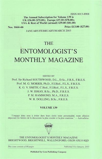 Entomologist's Monthly Magazine Vol. 139 (2003)