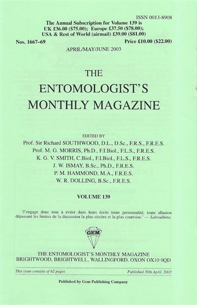 Entomologist's Monthly Magazine Vol. 139 Part 2 (2003)
