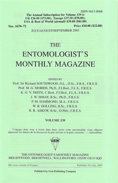 Entomologist's Monthly Magazine Vol. 139 Part 3 (2003)