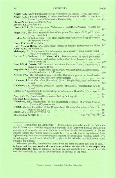 Entomologist's Monthly Magazine. Vol. 145 (2009)