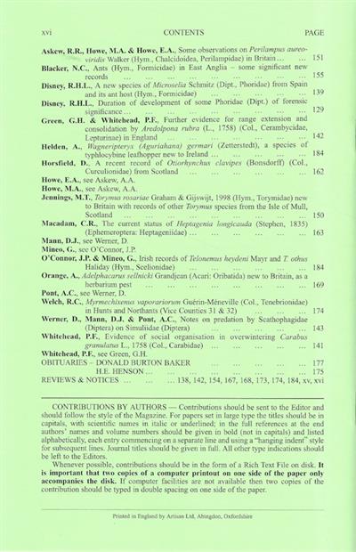 Entomologist's Monthly Magazine. Vol. 143 (2007)