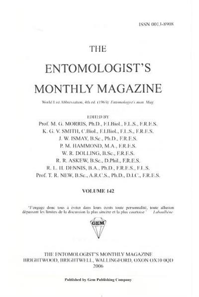 Entomologist's Monthly Magazine Vol. 142 Index (2006)