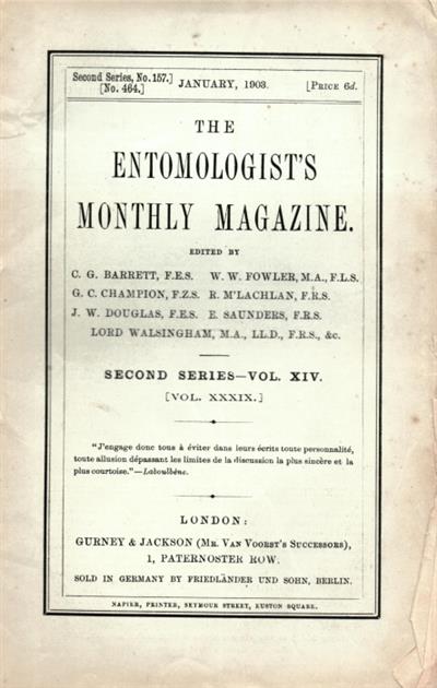 Entomologist's Monthly Magazine Vol. 39 (1903)