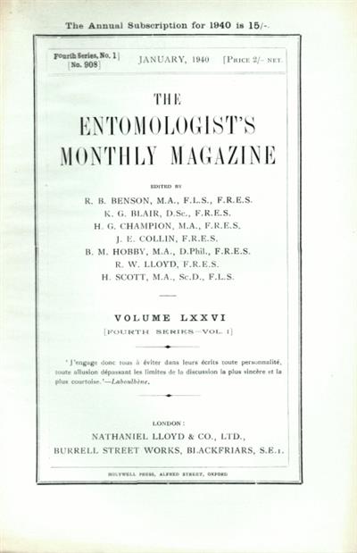 Entomologist's Monthly Magazine Vol. 76 (1940)