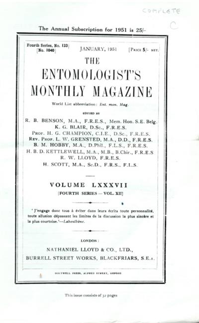 Entomologist's Monthly Magazine Vol. 87 (1951)