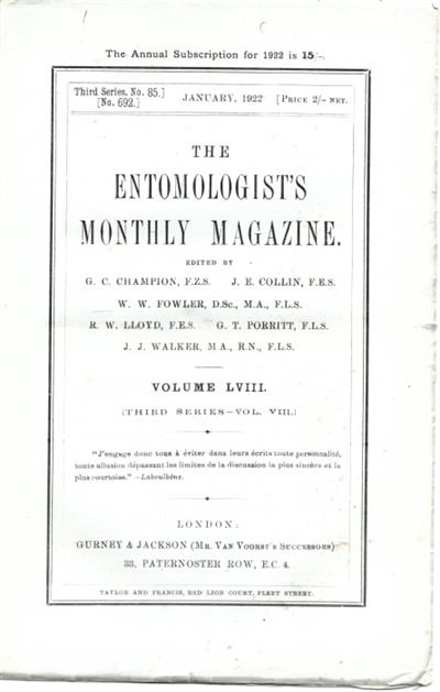 Entomologist's Monthly Magazine Vol. LVIII (1922)
