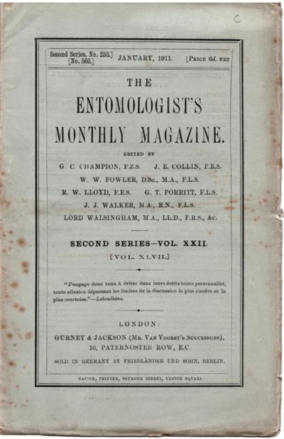 Entomologist's Monthly Magazine Vol. XLVII (1911)