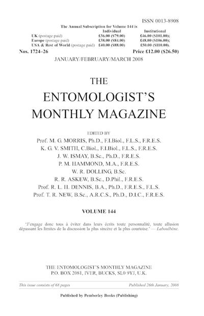 Entomologist's Monthly Magazine. Vol. 144 (2008)