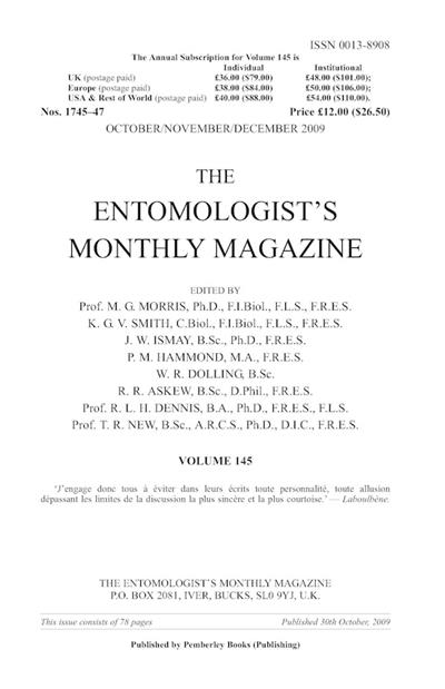 Entomologist's Monthly Magazine. Vol. 145 (2009)
