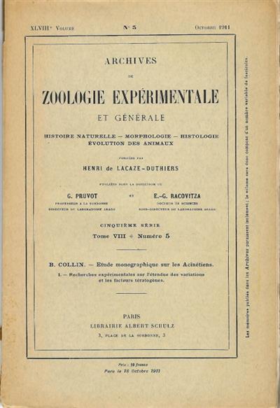 Text French. Arch. de Zool. Exp. et Gen. 5 Serie, Tome VIII