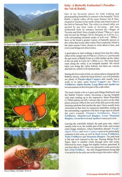 This is the first issue of a new magazine on European Butterflies, which will appear approximately once per year. Articles in this issue cover: Butterflies in the Picos Mountains in Spain, the Val Rabbi Mountains in Northern Italy and the mountains in Graubünden in Switzerland. There are special features on Hairstreaks in Spain, the Violet Copper in France and the Poplar Admiral in Switzerland. Butterflies in the spring are described in South East France and lowland butterflies are covered in Geneva in Switzerland. A Greenwings butterfly holiday in Romania is featured. Contributors include: Matt Berry, Robin Fox, David Irven, Dave Maertens, David Moore, Tony Payne and Paul Wetton. Each page has a unique selection of photographs. All photographs are identified with the butterfly, date and place.