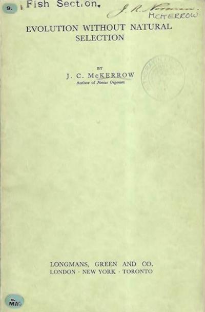 Scarce. James Clark McKerrow (1887-1965) was a British physician and philosopher, an original thinker and held unorthodox opinions. In this work he proposed a non-Darwinian view where evolution happens through inherent tendencies in "four-dimensional" life processes. This work supplemented his earlier metaphysical work,Novius Organum,1931.