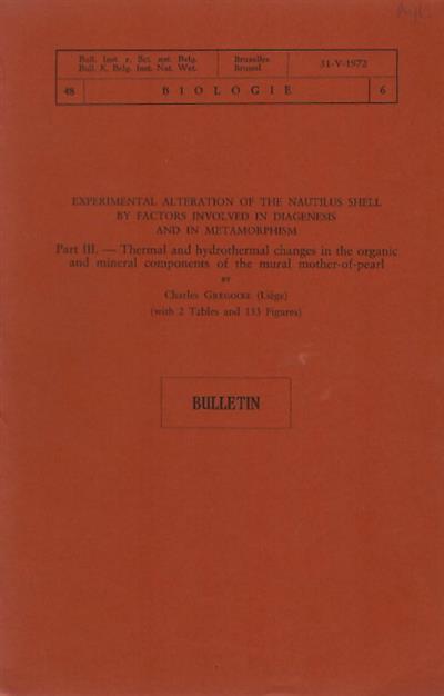Experimental Aleration of the Nautilus Shell by Factors Involved in Diagenesis and Metamorphism. Part III. Thermal and hydrothermal changes in the organic and mineral components of the mural mother-of-pearl