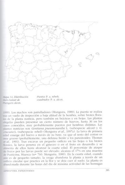 Text Spanish. Includes the five families (Papilionidae, Hesperiidae, Pieridae, Riodinidae, Lycaenidae and Nymphalidae) of the superfamily Papilionoidea (butterflies) of the Iberian Peninsula and the Balearic Islands. Information for each species: taxonomic position, geographic distribution, life history, ecology and phenology, parasitoids and other enemies and current conservation status. The descriptions, keys and illustrations facilitate identification. Includes colour plates illustrating the adults of the almost 230 Ibero-Balearic species.