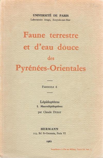 Faune terrestre et d'eau douce des Pyrénées-Orientales. Fasc. 6:Lépidoptères I. Macrolépidoptères