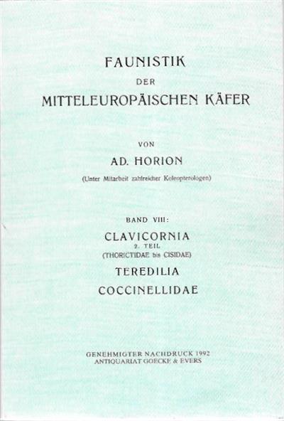 Faunistik der Mitteleuropäischen Käfer Band VIII: Clavicornia 2: (Thorictidae bis Cisidae) Teredilia Coccinellidae