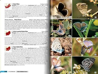 Second edition. This spectacular new edition is the only guide to cover all 671 butterfly species that occur in South Africa. Fully revised and expanded, it includes notes on size, identification, habitat, flight periods and larval food sources, plus notes on mimicry, plus accurate maps. More than 2,000 photographs fully showcase the region's diverse butterfly fauna, with full-colour images of male and female forms (where different) and of upper- and undersides (where possible) on pages facing the species entries, for easy reference. Designed for easy identification and optimal use in the field, this guide is an invaluable resource for any visiting naturalist or tourist to the country.