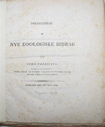 Scarce. From Videnskabernes Selskabs Skrifter II, pp. 13-16. Descriptions of new species (Flatworms, Leeches, Starfish). Otto Fabricius (1744-1822) was a Danish missionary and naturalist.