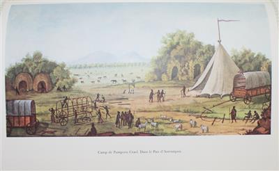 This major work includes chapters by leading researchers: Vol. 1, Matthys Bokhorst, François le Vaillant,: sa vie et son oeuvre; Vernon S. Forbes, Les voyages de Le Vaillant en Afrique austral, 1781-4; Ronald B. Lewcock and Dirk Visser, Les batiments dans les aquarelles de Le Vaillant ; Margaret Snow, Hottentots, Bushmen et Bantous ; P.R. Kirby, Le Vaillant et la musique indigene ; and J.M. Winterbottom, Le Vaillant, ornithologue. Vol. 2, Jurgens Meester, Les portraits de mammifères de Le Vaillant; S.H. Skaife, Insectes et serpents; P.G. Jordaan, Les peintures de plantes; Matthys Bokhorst, Origine et histoire des acquarelles de la collection Le Vaillant; Appreciation d’un historien de l’art ; A.M. Lewin Robinson, Notes bibliographiques en marge des travaux de Le Vaillant sur l’Afrique.