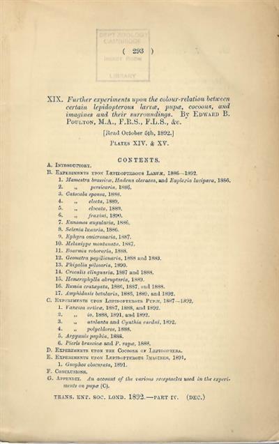 Further experiments upon the colour-relation between certain Lepidopterous larvae, pupae, cocoons, and imagines and their surroundings