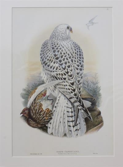 Limited facsimile edition print by Hill House, London & Melbourne, 1990, from Gould's 'Birds of Great Britain' Vol. 1 (1873). Greenland Falcon drawn by J. Wolf & W. Hart.