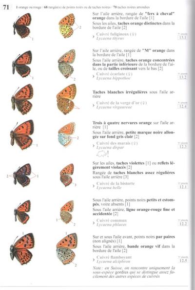 Text French. This guide enables the easy identification of the 216 species of butterfly and burnet moths of Switzerland. An identification key based on simple visual criteria with plates showing the diagnostic features for each species.