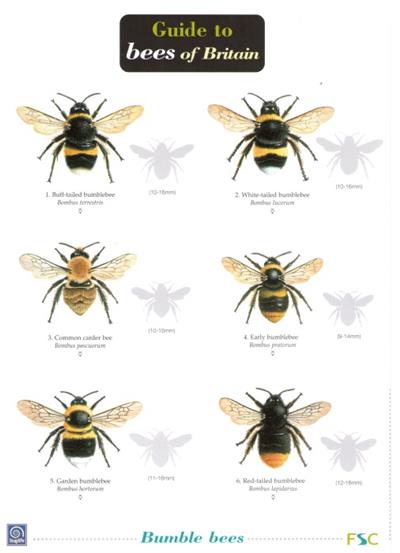 This fold-out chart covers 28 species of bee, most of which can commonly be seen in domestic gardens. As well as the 'Big Six' bumblebees, the chart includes species of mining bees, cavity-nesting bees and cuckoo bees. Silhouettes show the typical life-size for each species. Text on the reverse side includes a table, with full cross-referencing to the images, which gives further information on flight periods, distribution of each species in Britain, and useful pointers to help distinguish between similar-looking species