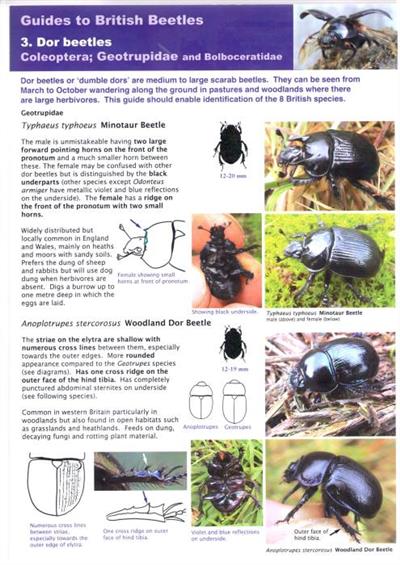 Guides to British Beetles 3: Dor Beetles. Coleoptera; Geotrupidae and Bolboceratidae