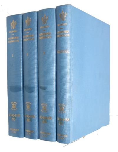 4 vols, 4to (255x200mm), recent blue buckram, gilt titles to spines. Some, mostly light foxing throughout, a few plates browned and more heavily foxed. Withdrawn from an institutional library with small, neat ink stamps to half-titles, titles, final leaves and verso of plates. A good set.