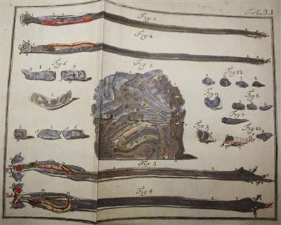 ZBI 3801. There are two copies of each of the two plates (one uncoloured and one coloured). An early treatise on shipworms (Teredo), a worm-like marine mollusc which bores into submerged timber. While resident in the Netherlands, Sellius used a microscope to study the shipworm which was causing great damage to Dutch ships and dikes.