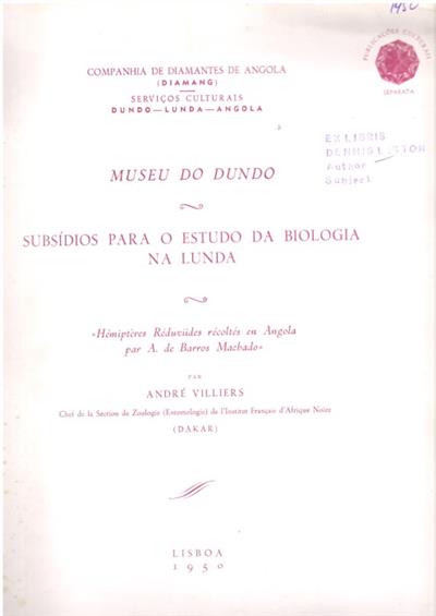 Text French. Offprint from Publicacoes Culturais da Companhia de Diamantes de Angola