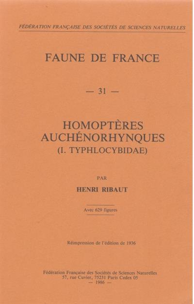Homopteres Auchenorhynques I: Typhlocybidae Faune de France 31