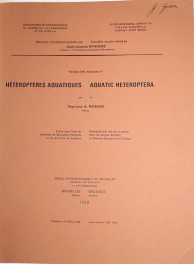 Hétéroptères Aquatiques - Aquatic Heteroptera (Hydrobiological Survey of the Lake Bangweulu Luapula River Basin, Vol. XIV, Fasc. 11)