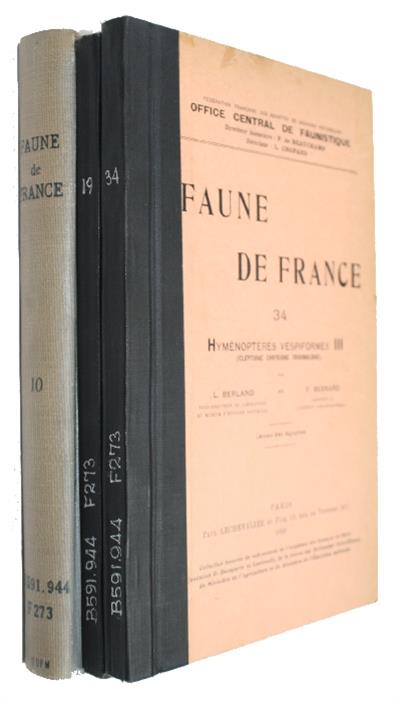 Text French. I: Sphegidae, Pompilidae, Scoliidae, Sapygidae, Mutillidae; II: Eumenidae, Vespidae, Masaridae, Bethylidae, Dryinidae, Embolemidae; III: Cleptidae, Chrysidae, Trigonalidae. Complete 3-volume set. Scarce.