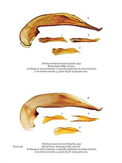 Text Italian. The first Italian monograph on the genus Trechus. All species and subspecies are represented on 72 excellent colour photographs. For easier identification of each species, the photo of the specimen is accompained by one or more colour images of genitalia (on 94 plates) and a distribution map.