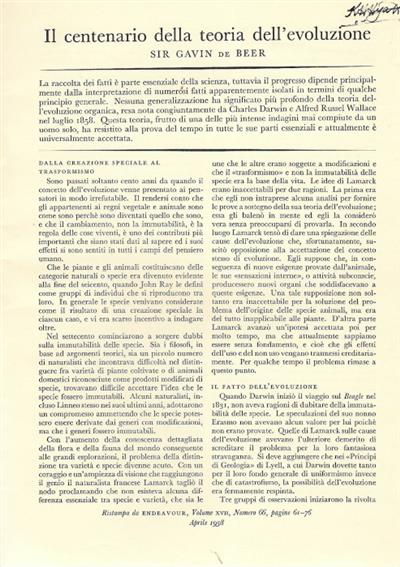 Text Italian . Reprinted from Endeavour Vol XVII, no. 66, pp 61-76.