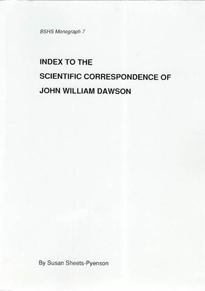 British Society for the History of Science Monograph 7. John William Dawson (1820-99) was a geologist and palaeobotanist known as a founder and promoter of scientific institutions in Canada.