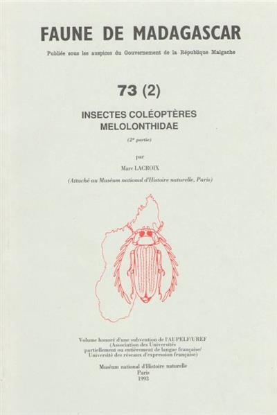 Insectes Coleopteres Melolonthidae (Faune de Madagascar 73(2))
